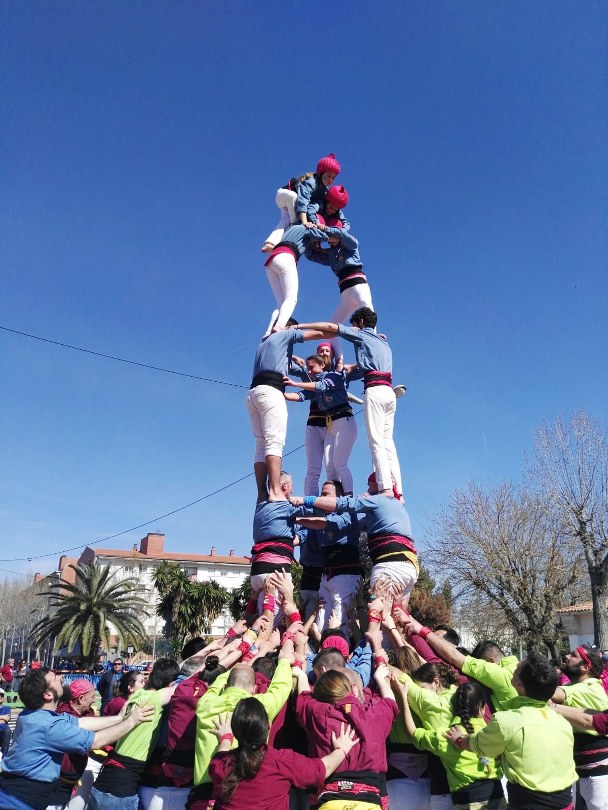 Agraïm a totes les colles el seu suport a pinyes i enhorabona per les seves actuacions. I també a les colles del Nus que ens han ajudat en l’organització de la calçotada al barri. Esperem continuar les properes actuacions en la mateixa línia. La propera cita serà diumenge 17 de març a Barcelona en la diada de colles filloles dels padrins, Castellers de Barcelona pel seu 50è aniversari, una trobada que comptarà amb 19 colles de moltes procedències com Encantats de Begues, Cornellà, Minyons de Terrassa o de fora com Sidney, més la colla padrina, Castellers de Barcelona. La diada es farà a l’Antiga Fàbrica Damm de Barcelona.